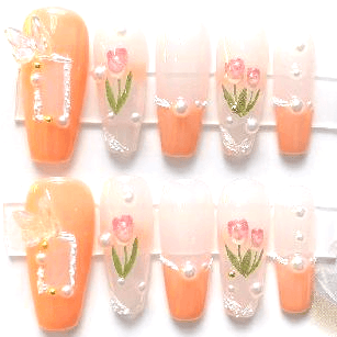 - Authentic hand-painted press-on. made with heart by real nail techs