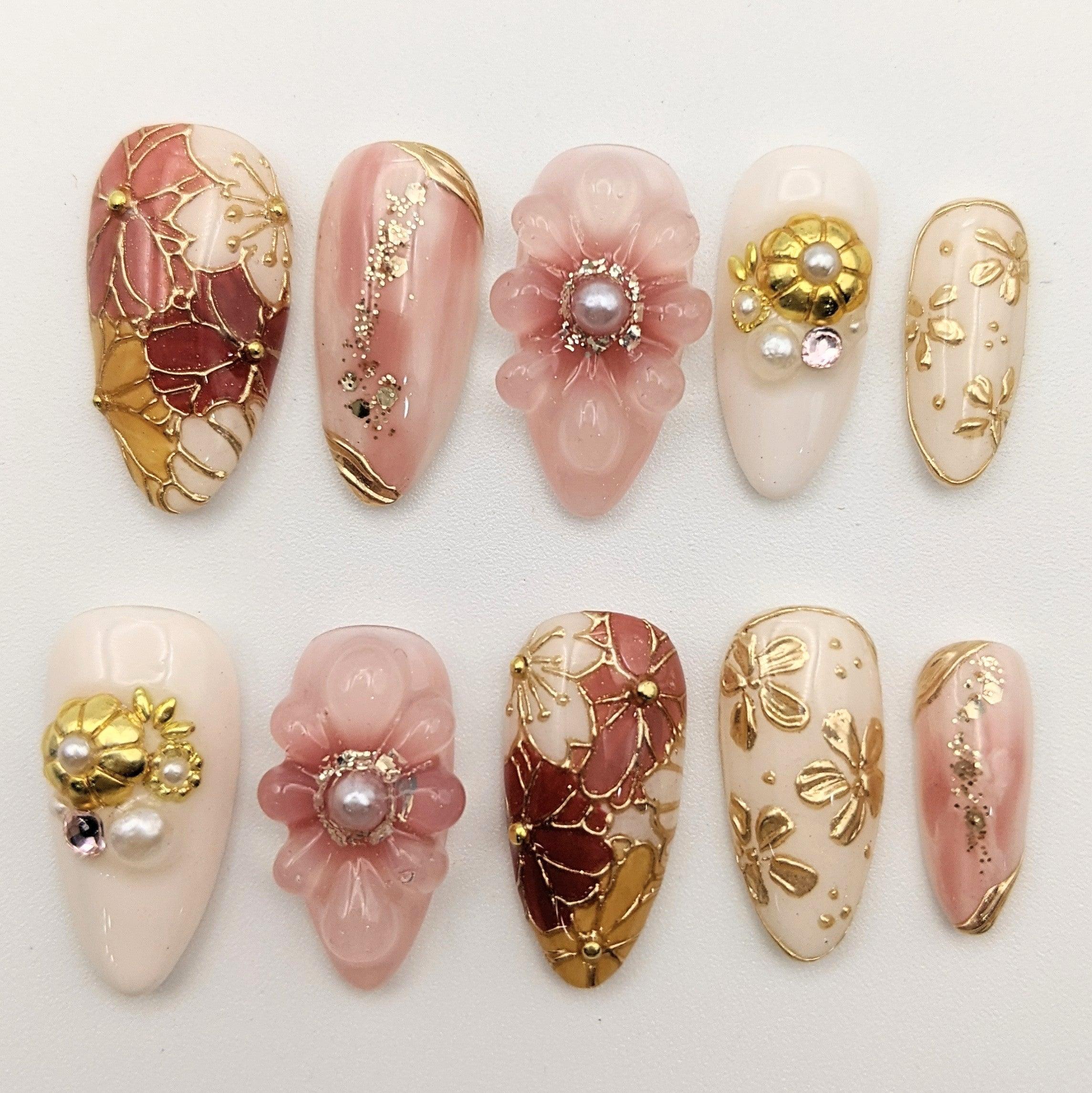 - Authentic hand-painted press-on. made with heart by real nail techs