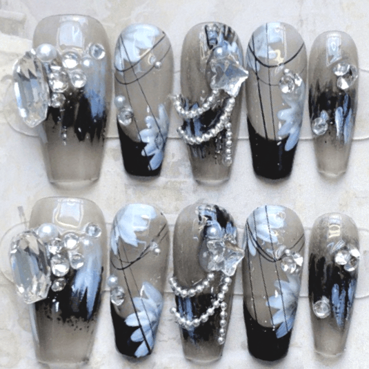 - Authentic hand-painted press-on. made with heart by real nail techs