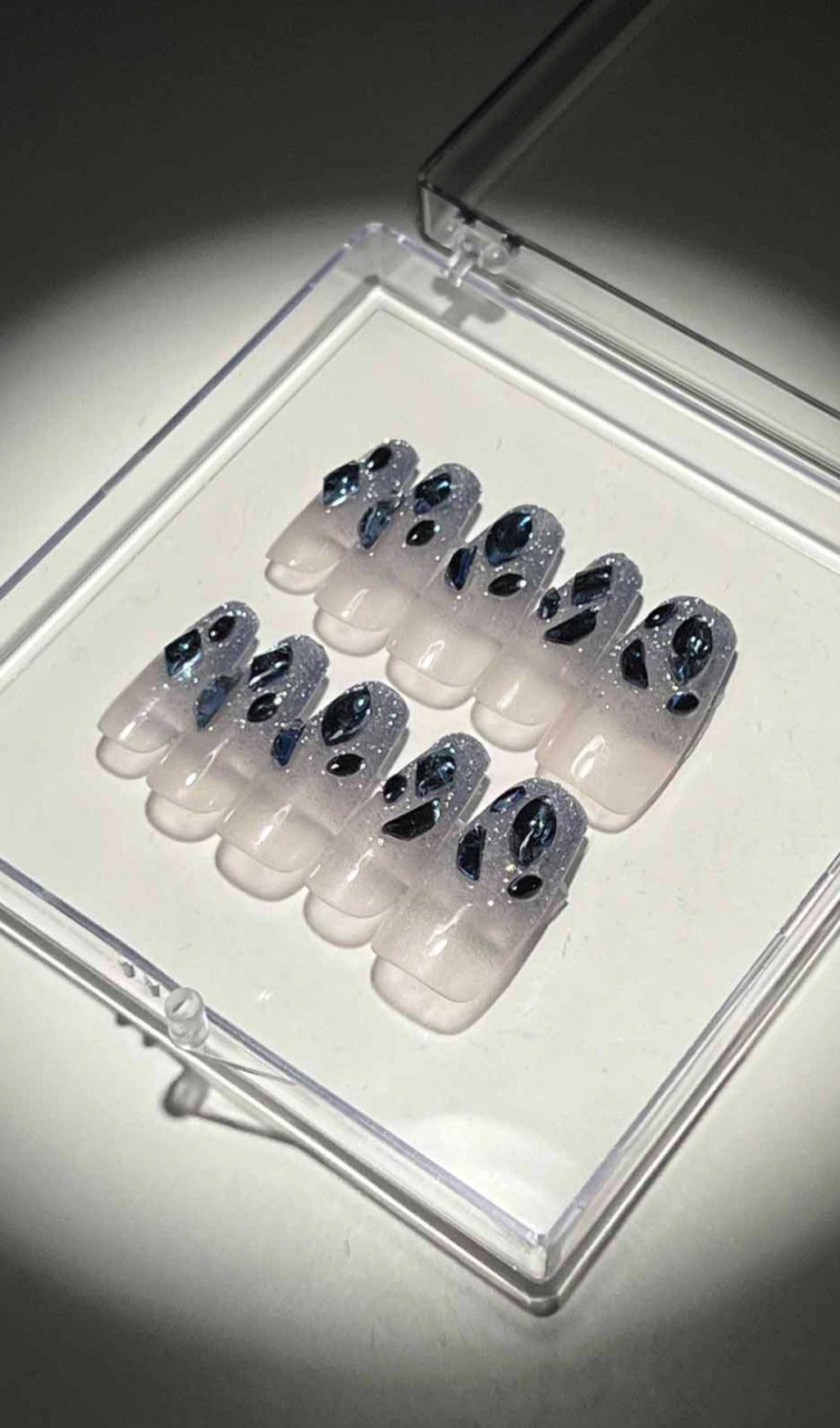 Get ready to shine with our Blue Crystal Glitter Press On Nails! These stunning press-ons will give your manicure a show-stopping look in no time. With their flash diamond lake blue design. your nails will sparkle and catch everyone's attention. Say goodbye to the hassle of going to a nail salon and hello to a quick and easy manicure that will make a lasting impression.