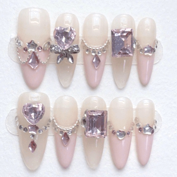 - Authentic hand-painted press-on. made with heart by real nail techs
