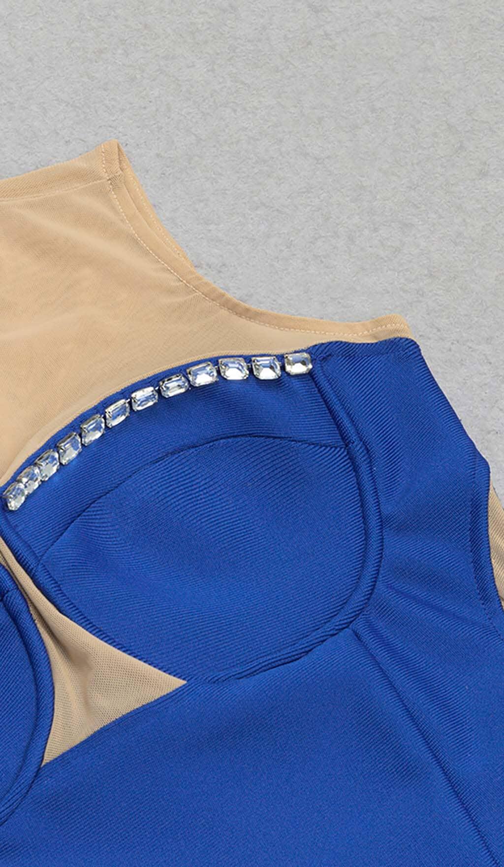Elevate your style with the BODYCON MESH MIDI DRESS IN BLUE. Its unique design and attention to detail set it apart from other dresses on the market. Don't miss out on this must-have dress that will surely turn heads wherever you go.