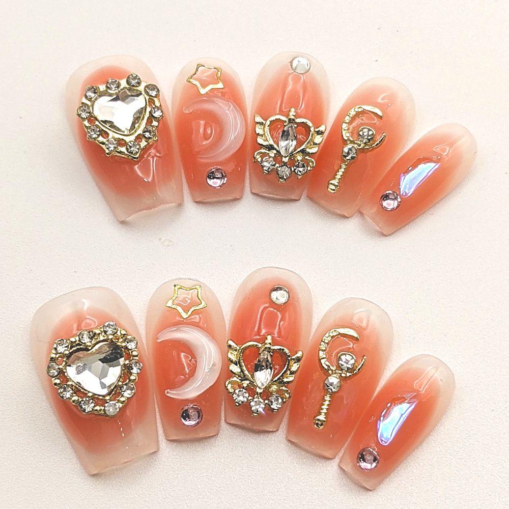 - Authentic hand-painted press-on. made with heart by real nail techs