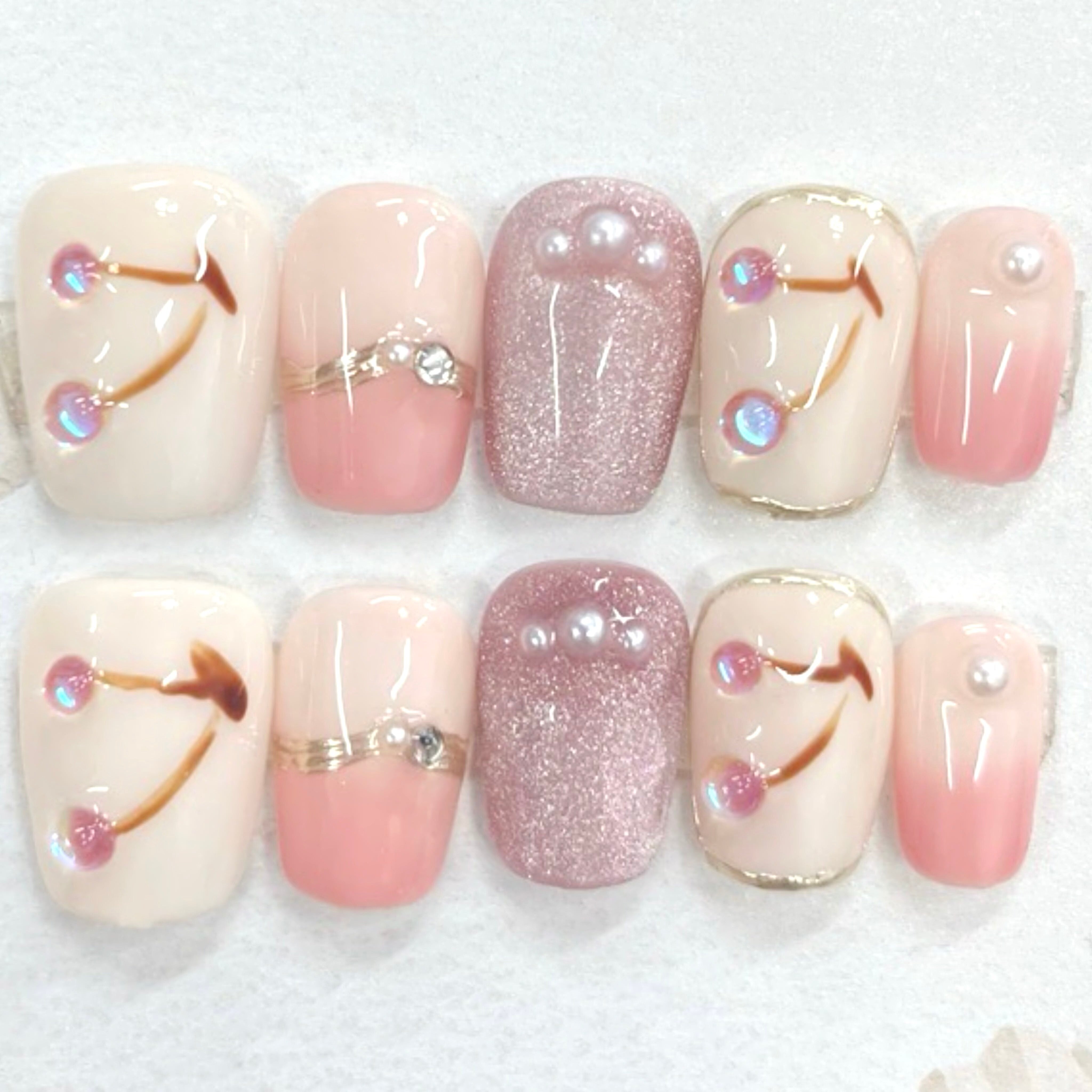 - Authentic hand-painted press-on. made with heart by real nail techs