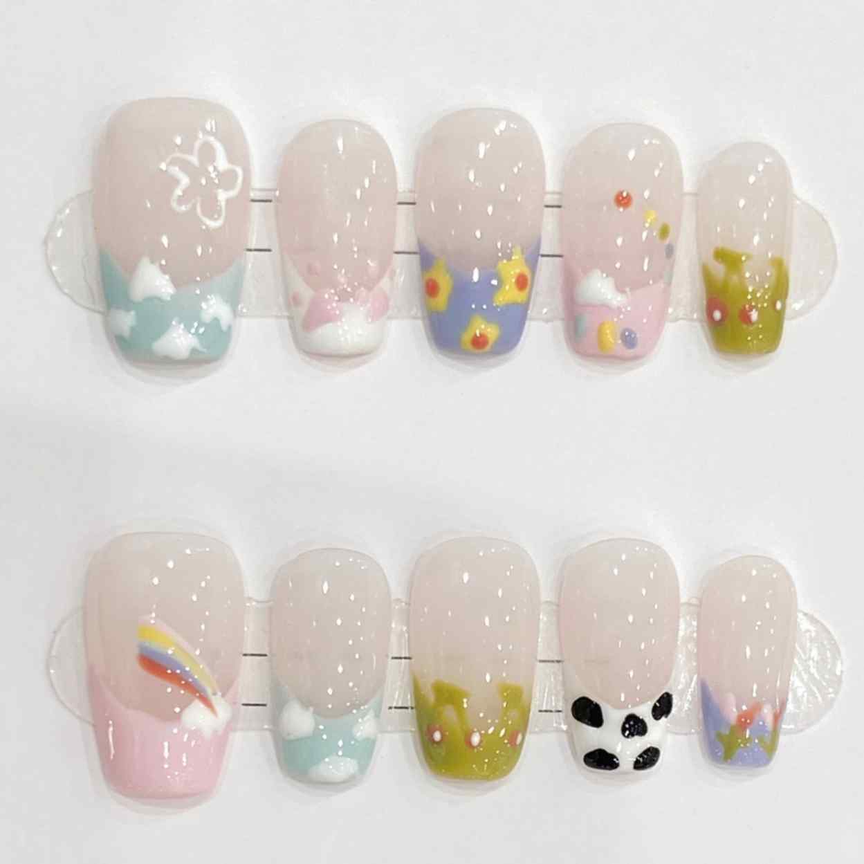 - Authentic hand-painted press-on. made with heart by real nail techs