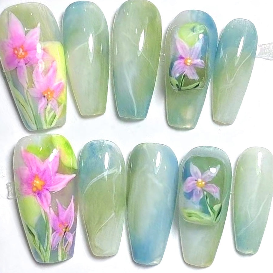 - Authentic hand-painted press-on. made with heart by real nail techs