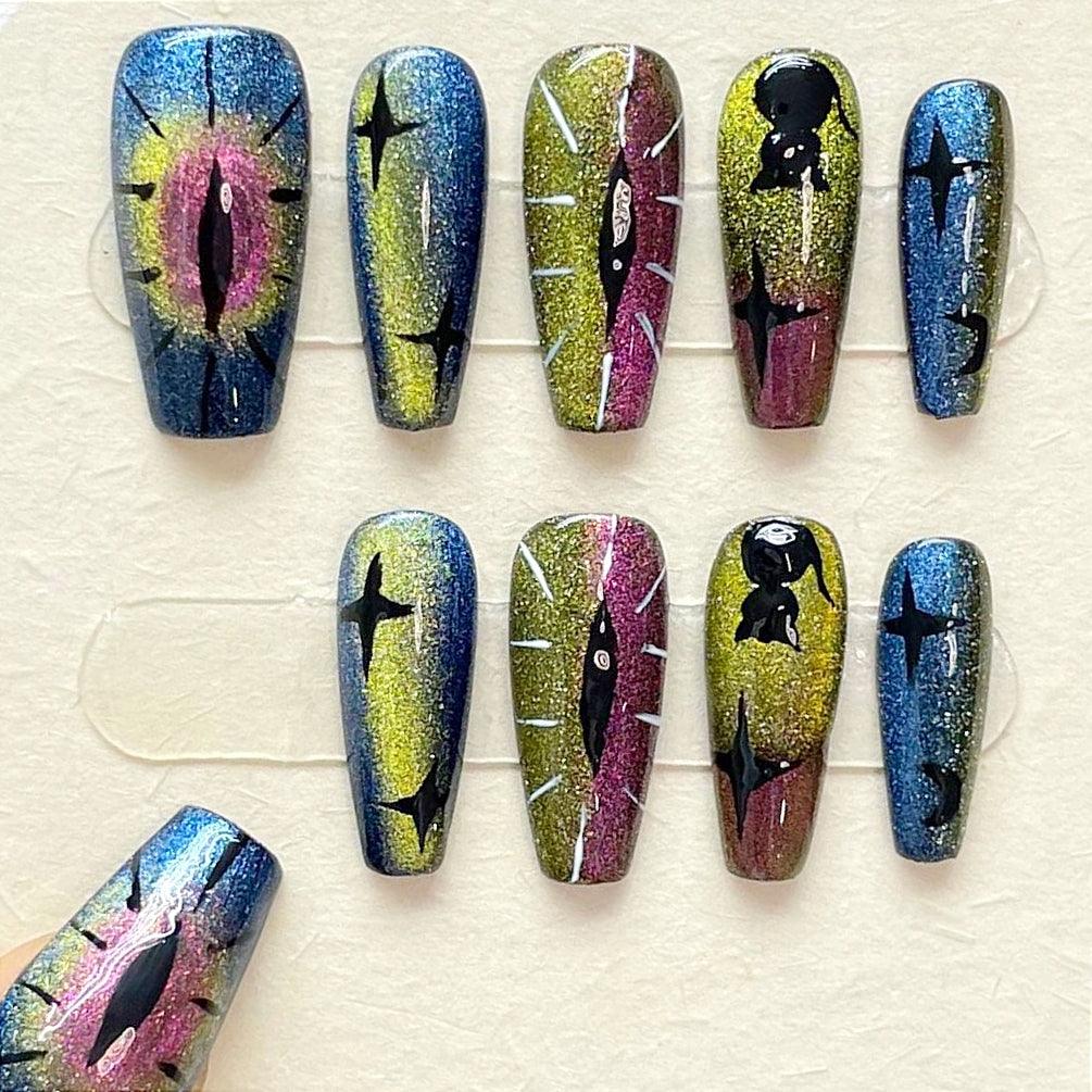 - Authentic hand-painted press-on. made with heart by real nail techs