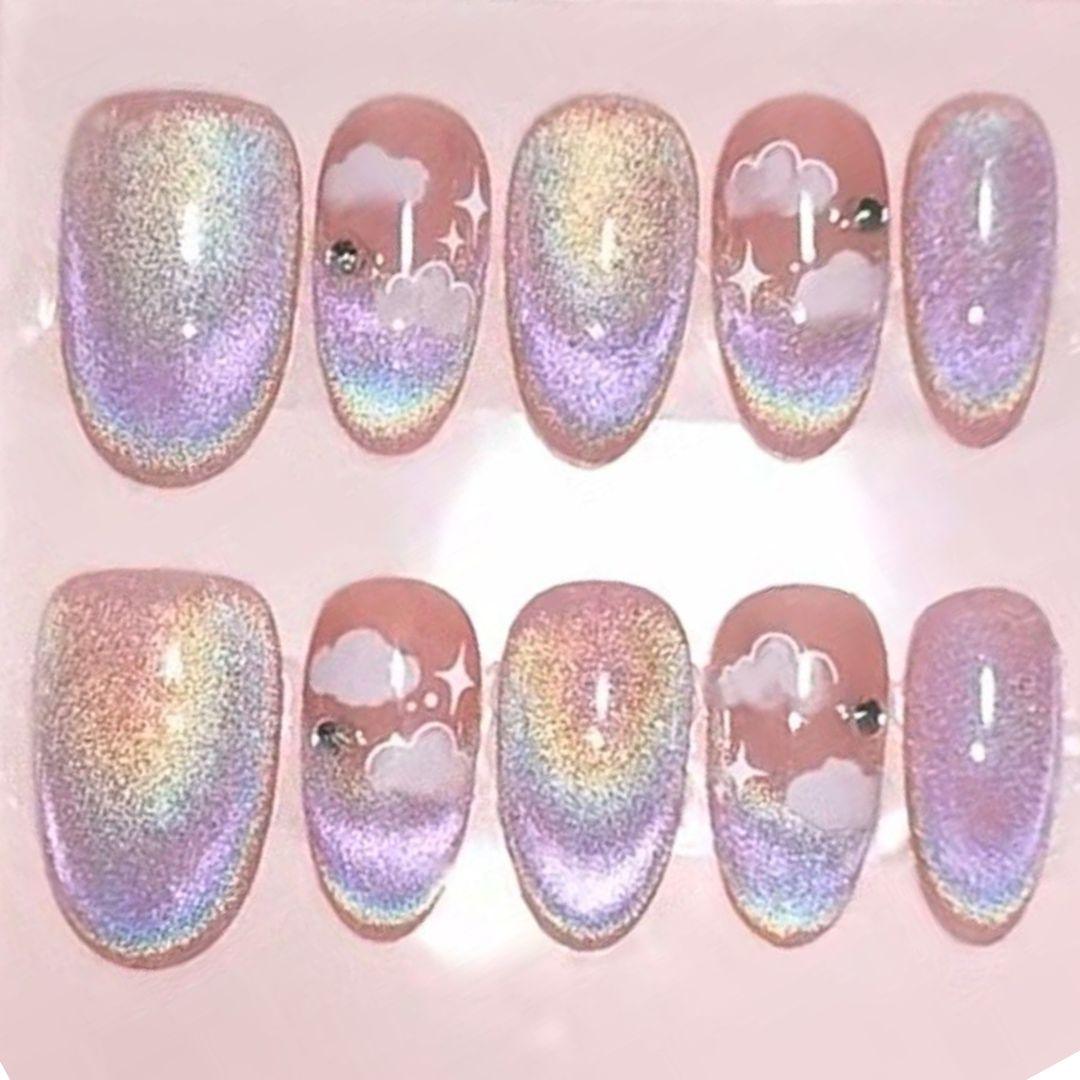 - Authentic hand-painted press-on. made with heart by real nail techs