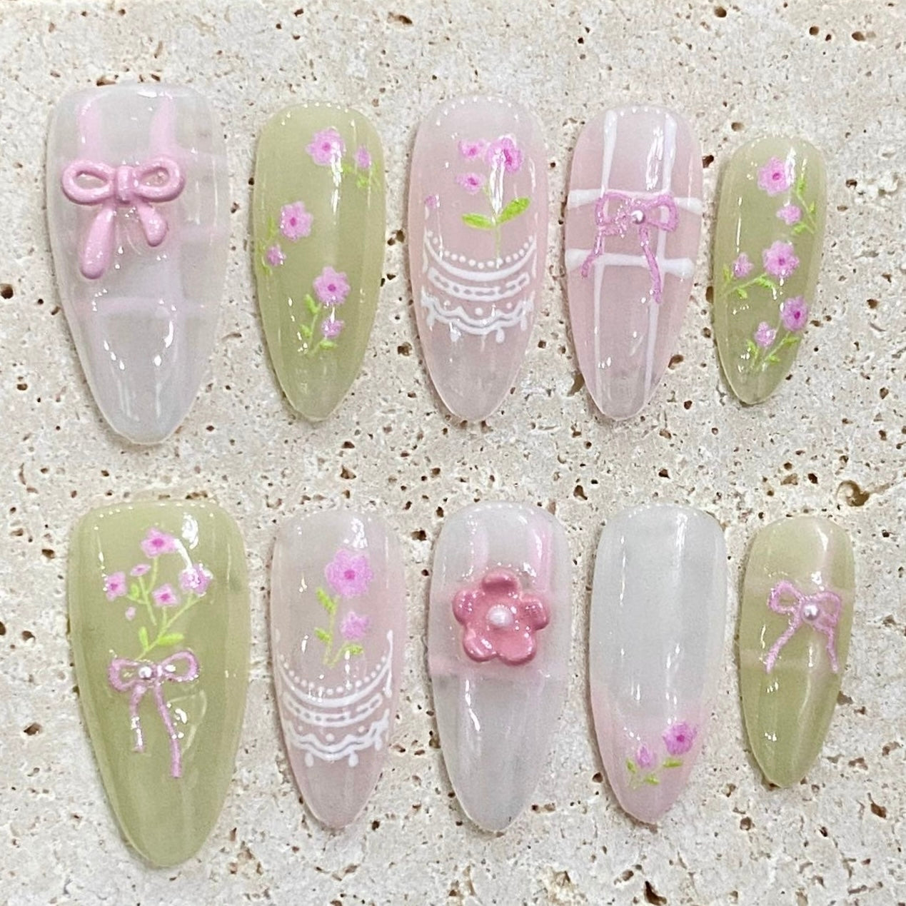 - Authentic hand-painted press-on. made with heart by real nail techs