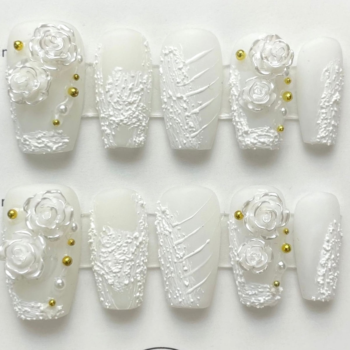 - Authentic hand-painted press-on. made with heart by real nail techs