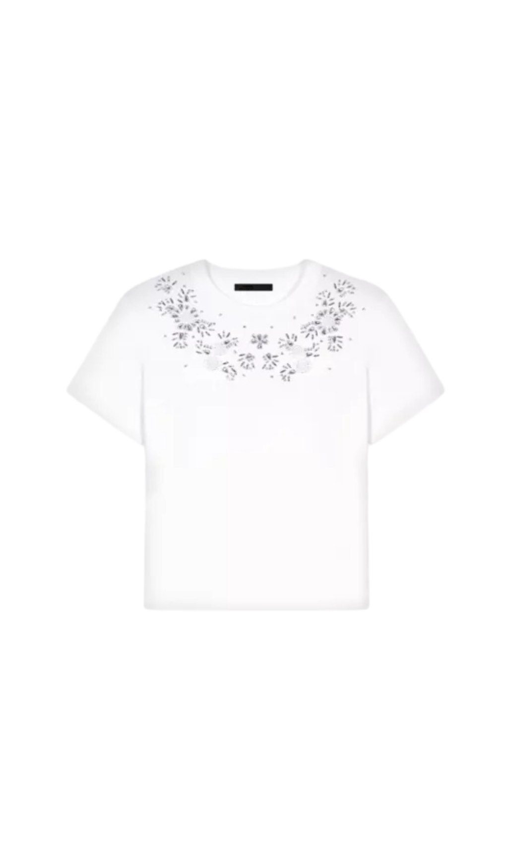 This stunning top features delicate floral embellishments. adding feminine flair to any outfit. Dress it up or down for a versatile and stylish look. Elevate your wardrobe today with this must-have piece!