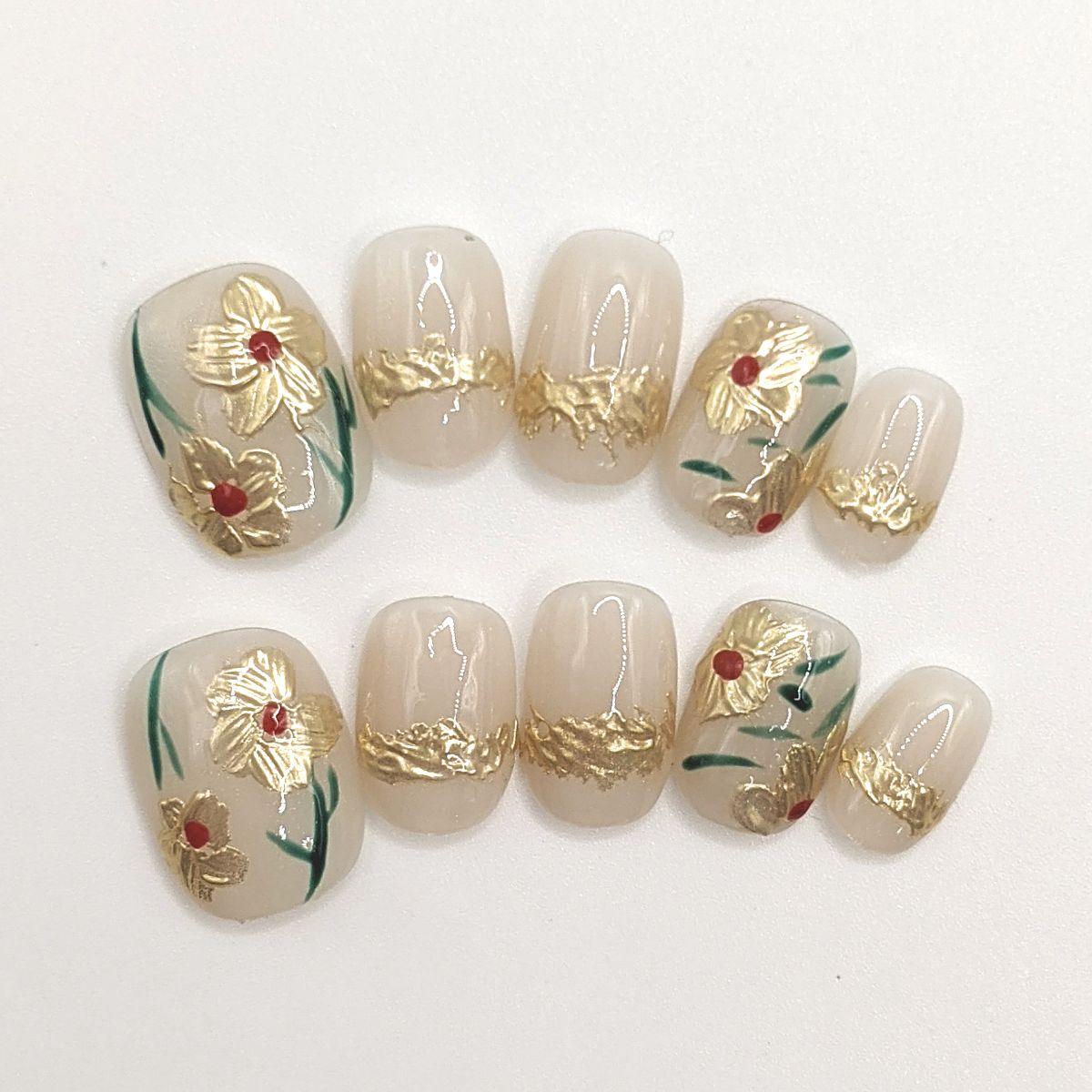 - Authentic hand-painted press-on. made with heart by real nail techs