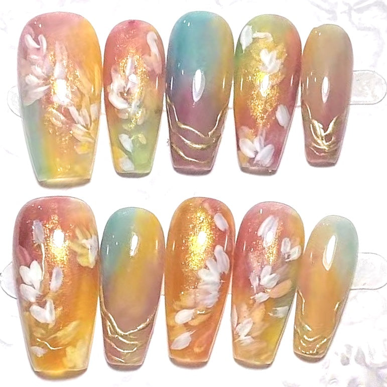 - Authentic hand-painted press-on. made with heart by real nail techs