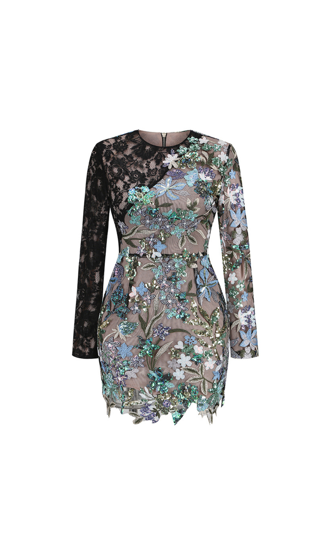 The delicate lace and shimmering sequins are sure to turn heads. while the long sleeves provide both elegance and warmth. Perfect for any special occasion. this dress is a must-have for anyone who wants to make a statement and feel beautiful.