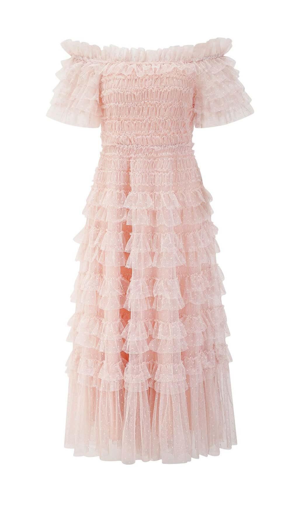 Look perfectly sweet and chic in this darling pink midi dress. Designed with a trendy off-the-shoulder neckline and tiered ruffles. this dress is the epitome of feminine charm.