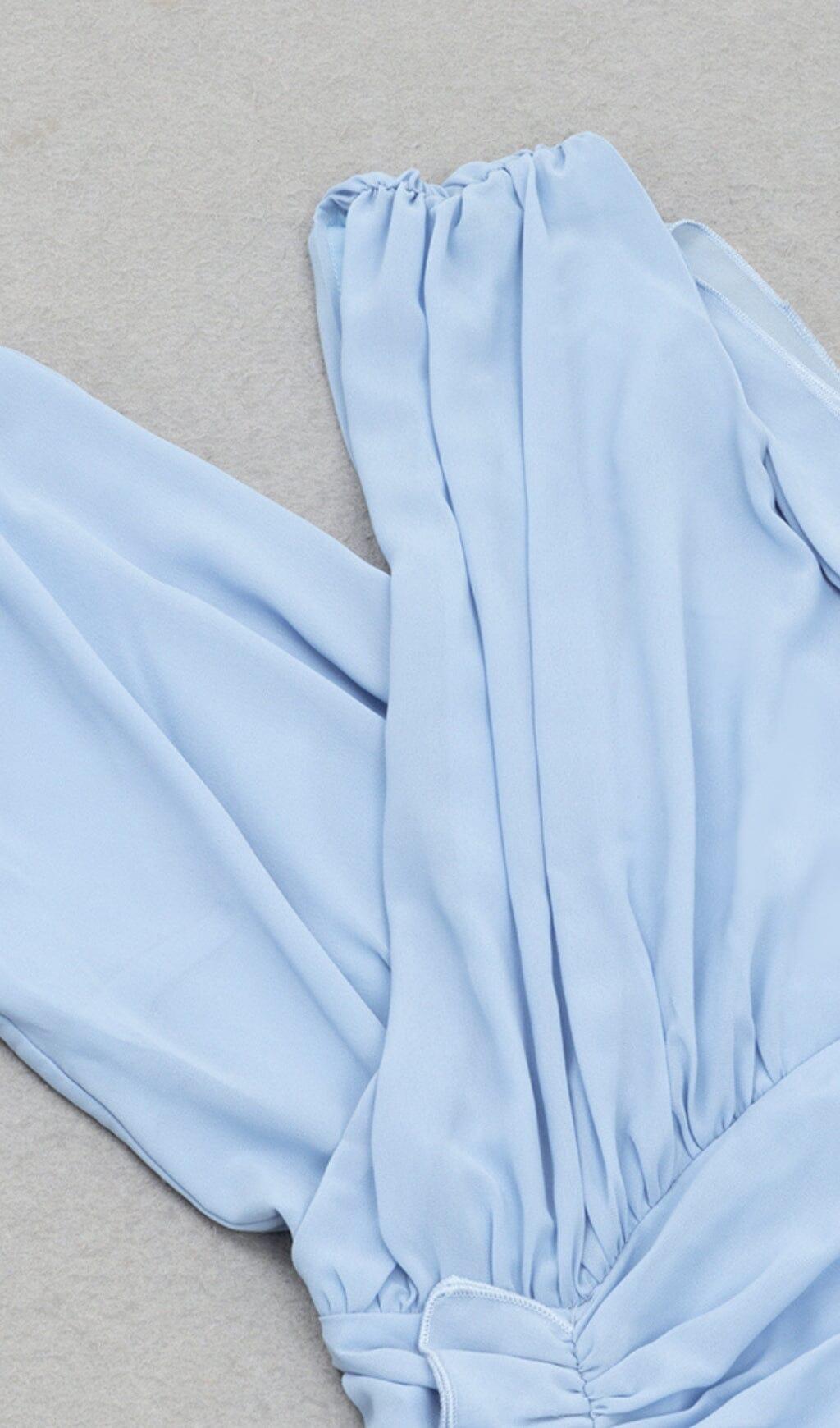 Elevate your style with this Ruffle V-Neck Midi Dress in Tranquil Ocean. Whether you're attending a special event or simply want to look chic and effortless. this dress is the perfect choice. Shop now and experience the elegance and versatility of this stunning piece.