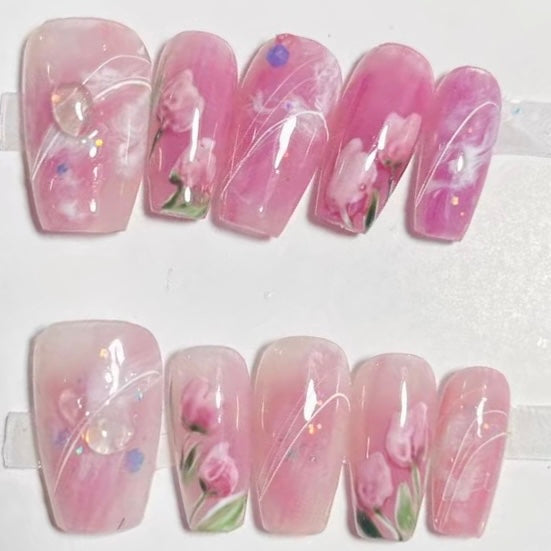 - Authentic hand-painted press-on. made with heart by real nail techs