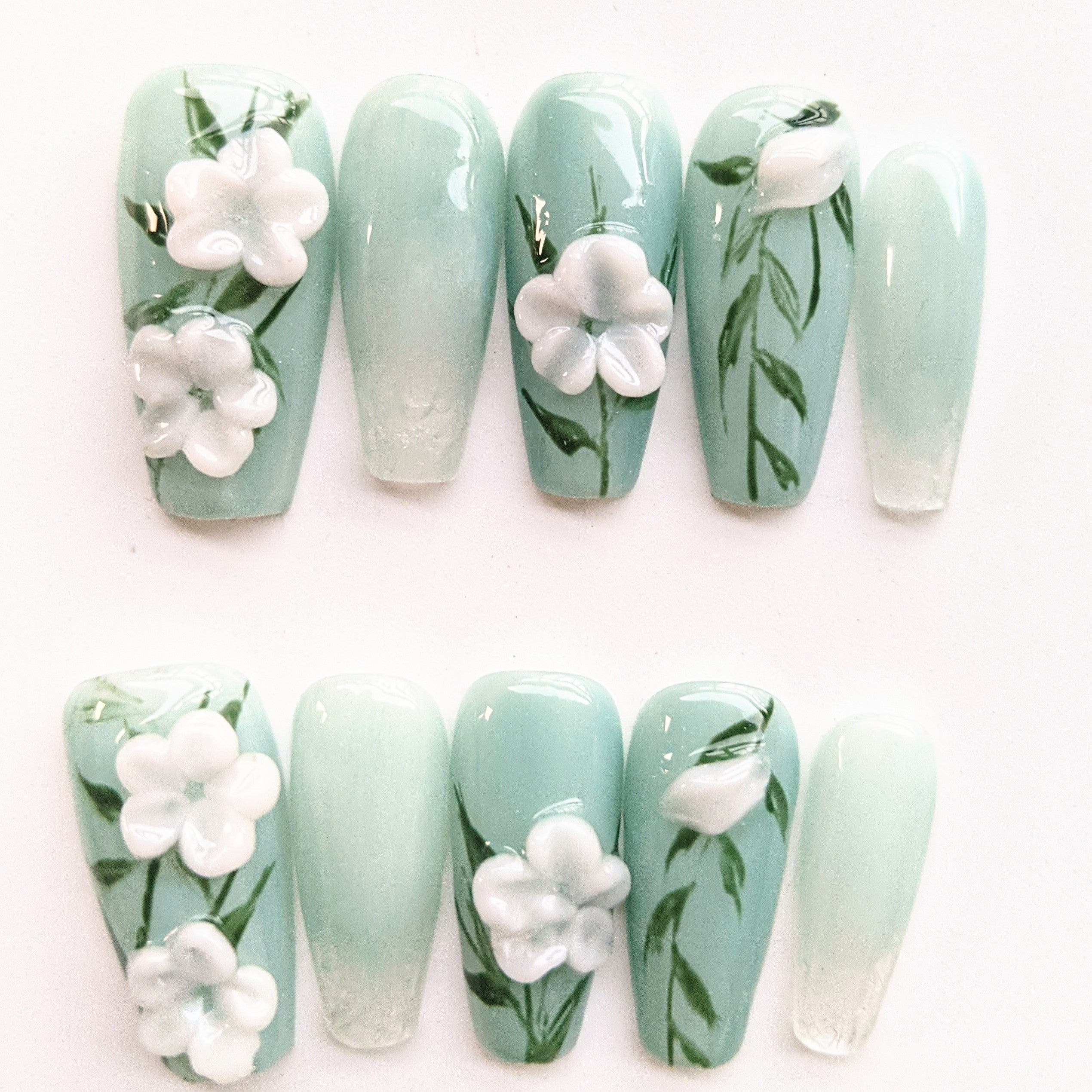 - Authentic hand-painted press-on. made with heart by real nail techs