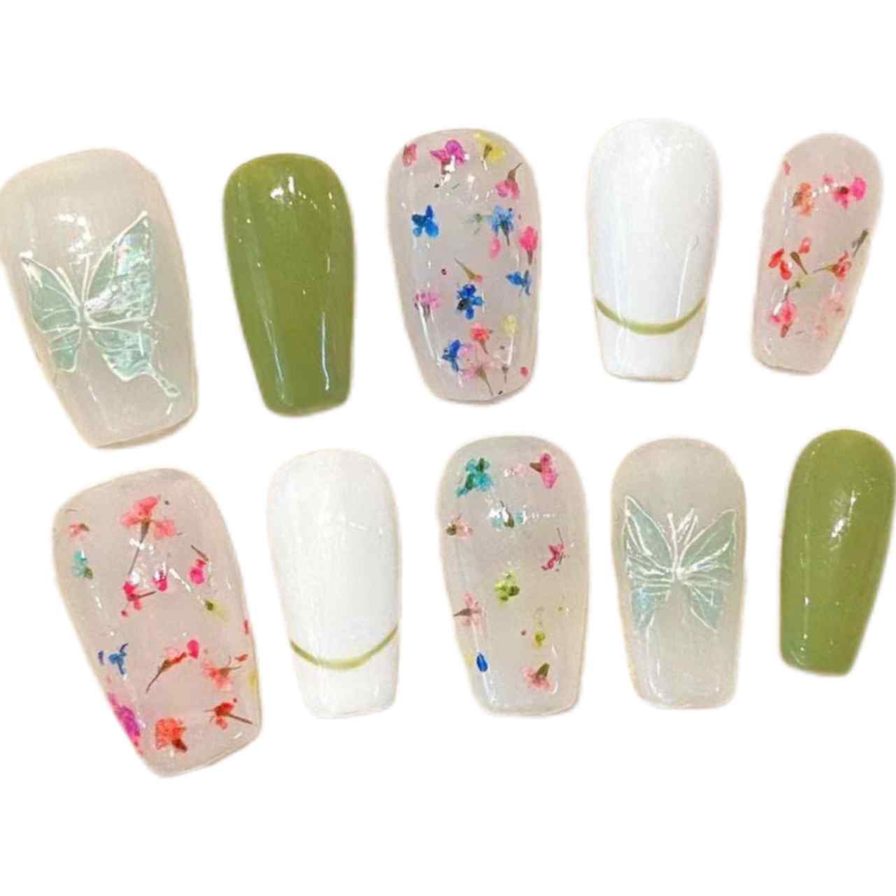 - Authentic hand-painted press-on. made with heart by real nail techs