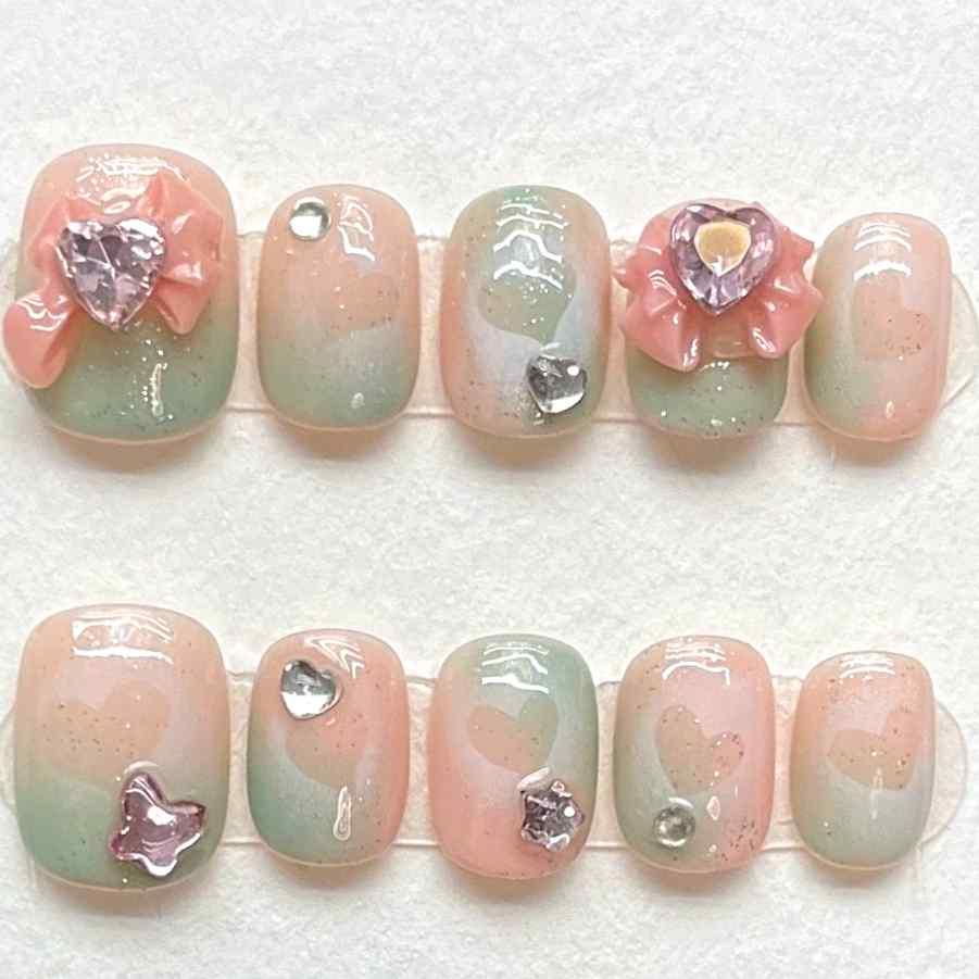 - Authentic hand-painted press-on. made with heart by real nail techs