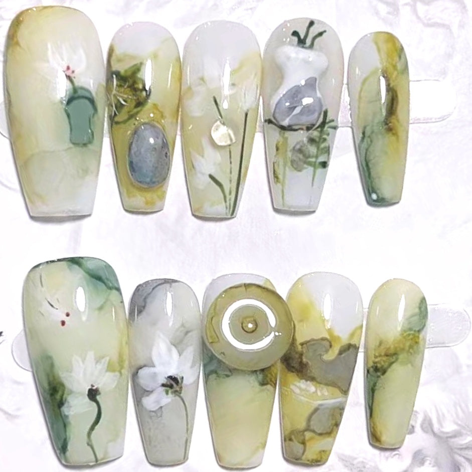 - Authentic hand-painted press-on. made with heart by real nail techs