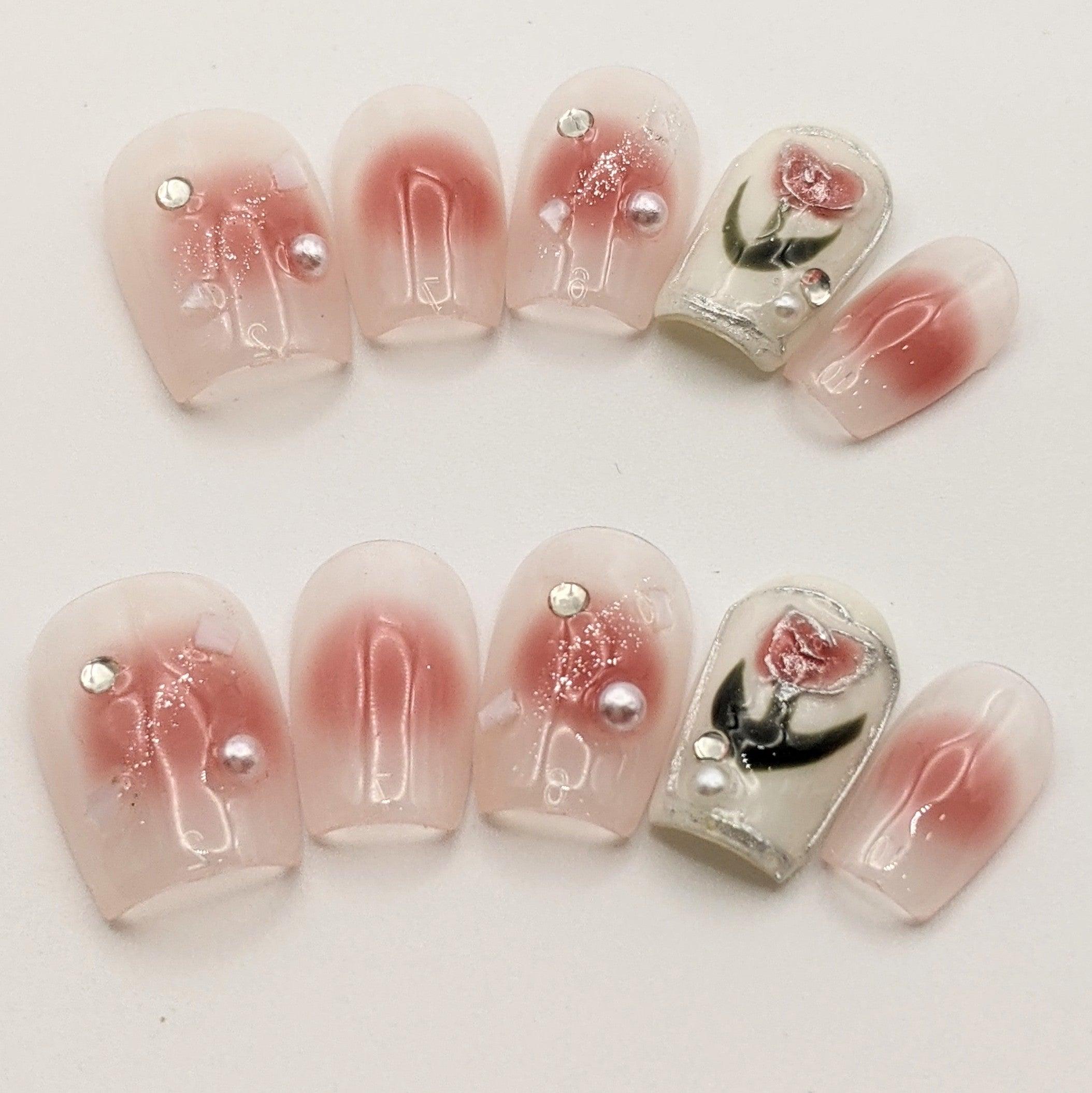 - Authentic hand-painted press-on. made with heart by real nail techs