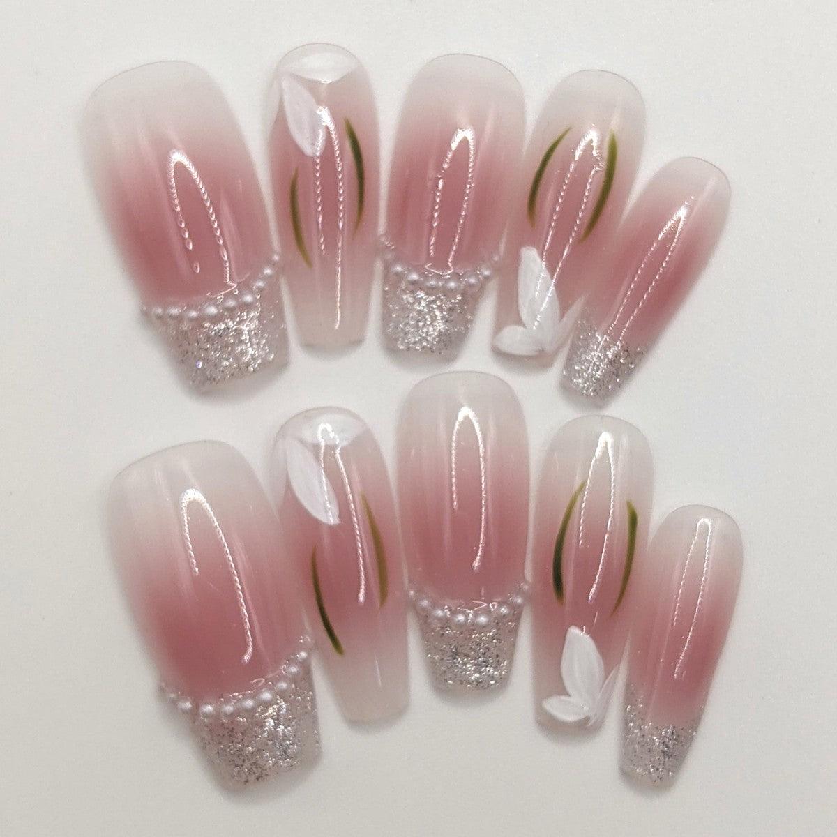 - Authentic hand-painted press-on. made with heart by real nail techs