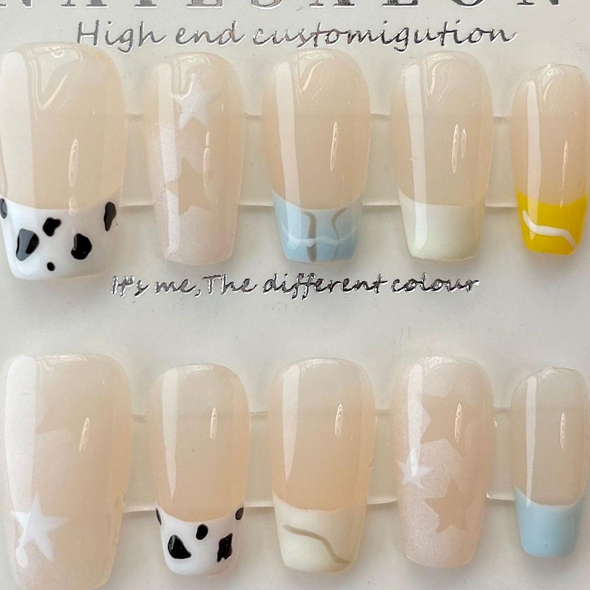 - Authentic hand-painted press-on. made with heart by real nail techs